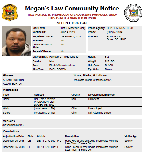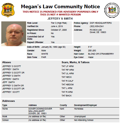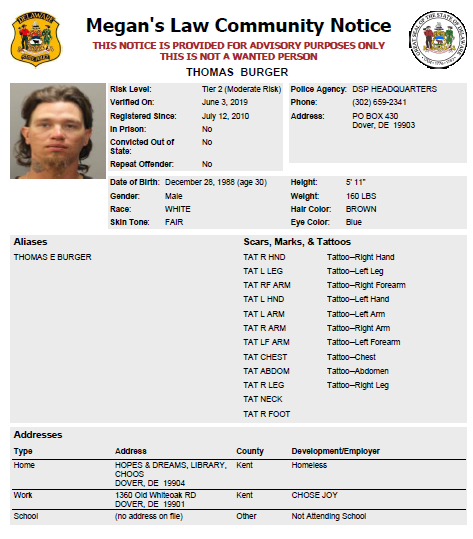 Homeless Sex Offender Notification