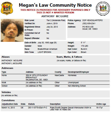 Dover– The following subjects are not wanted. This is a Homeless Sex Offender Public Notification. If you have information that the listed subjects are occupying a residence, please call 302-672-5306. Information may also be provided by calling Delaware Crime Stoppers at 1-800-TIP-3333, via the internet at http://www.delaware.crimestoppersweb.com.