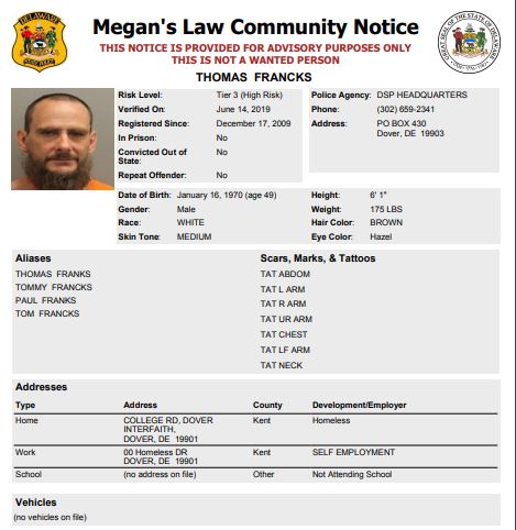 Homeless Sex Offender Notification