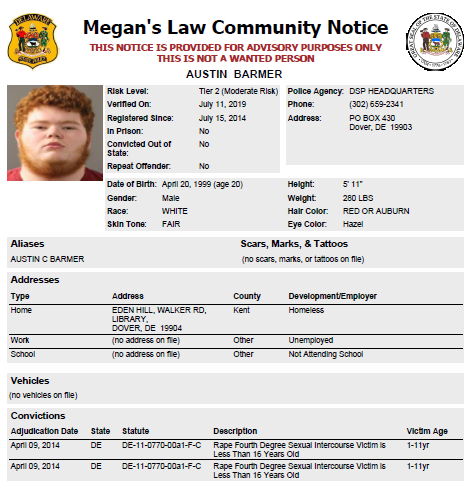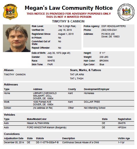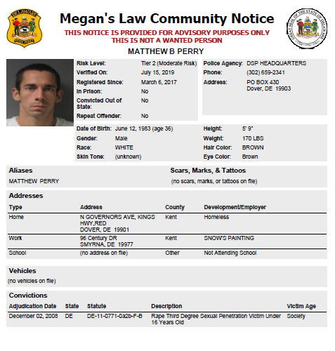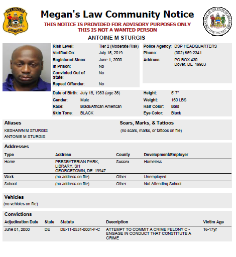Dover– The following subjects are not wanted. This is a Homeless Sex Offender Public Notification. If you have information that the listed subjects are occupying a residence, please call 302-672-5306. Information may also be provided by calling Delaware Crime Stoppers at 1-800-TIP-3333, via the internet at http://www.delaware.crimestoppersweb.com.