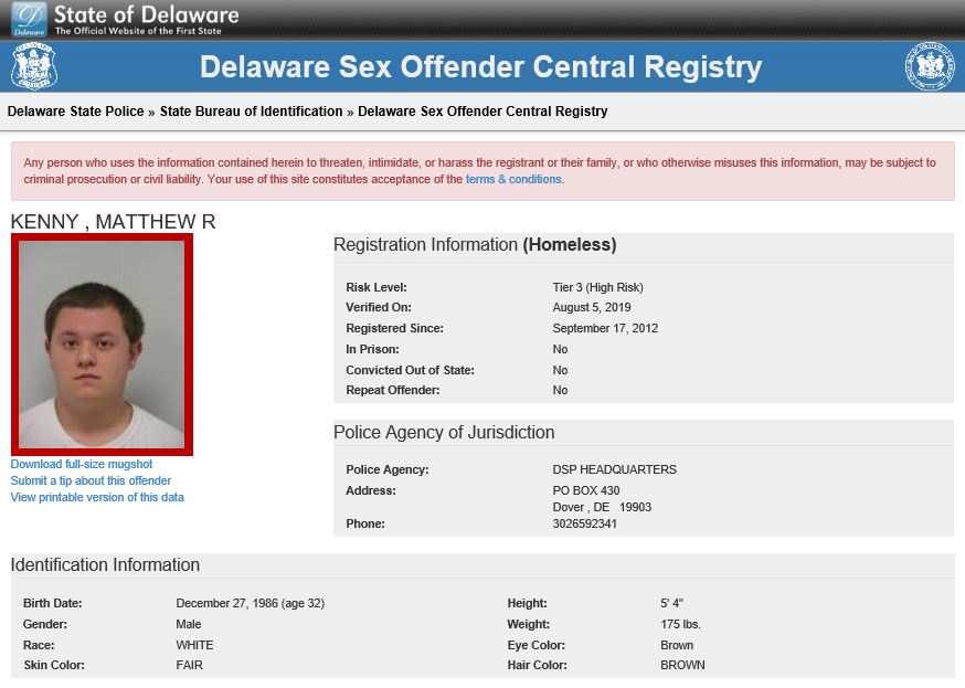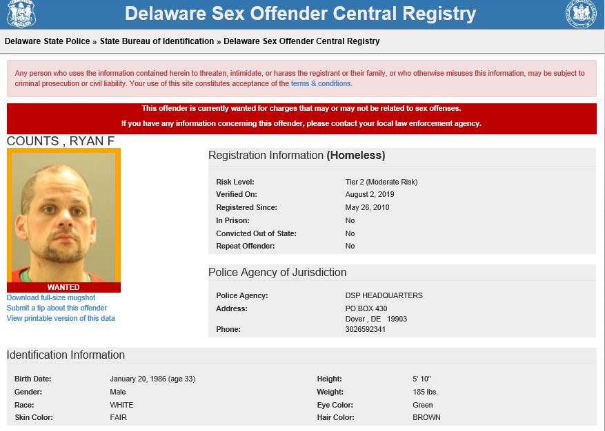 Dover– The following are not wanted. These are Homeless Sex Offender Public Notifications. If you have information that any of the listed subjects are occupying a residence, please call 302-672-5306. Information may also be provided by calling Delaware Crime Stoppers at 1-800-TIP-3333, via the internet at http://www.delaware.crimestoppersweb.com.