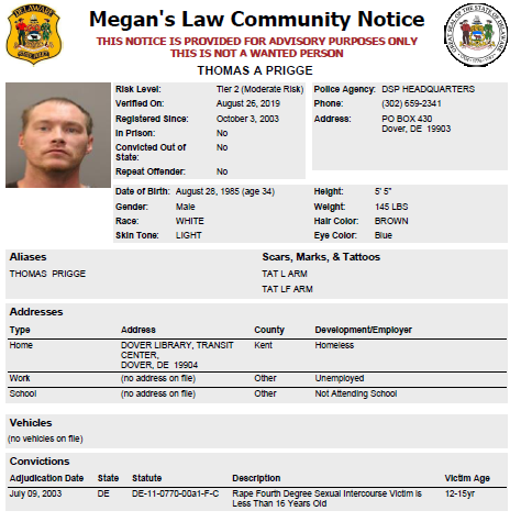 Homeless Sex Offender Notification