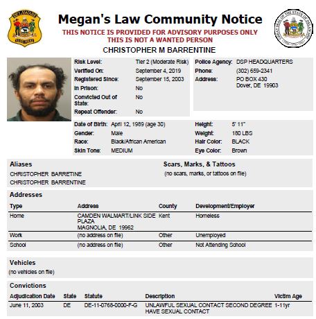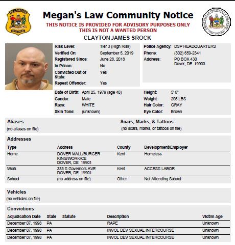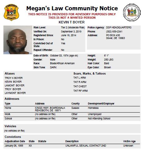 Homeless Sex Offender Notification