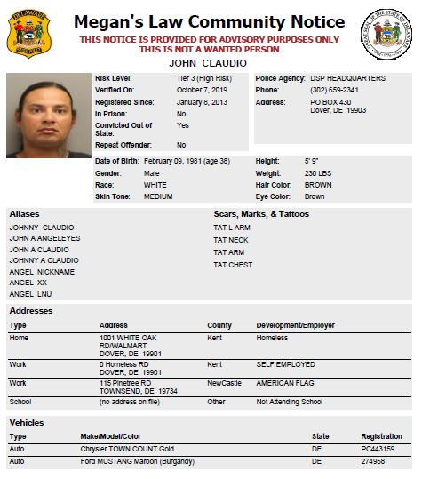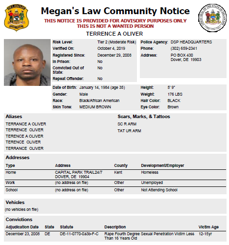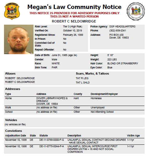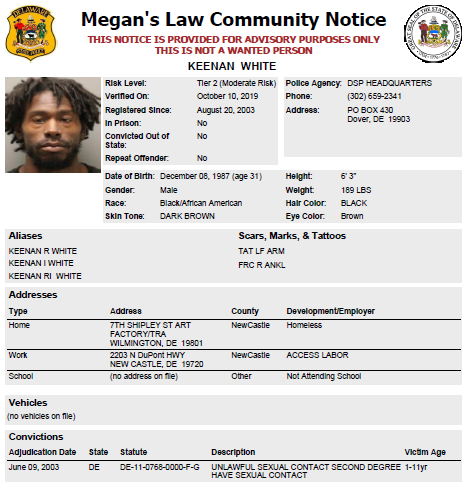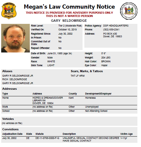Homeless Sex Offender Notification