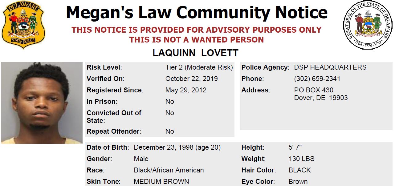 Dover– The following are not wanted. These are Homeless Sex Offender Public Notifications. If you have information that any of the listed subjects are occupying a residence, please call 302-672-5306. Information may also be provided by calling Delaware Crime Stoppers at 1-800-TIP-3333, via the internet at http://www.delaware.crimestoppersweb.com.