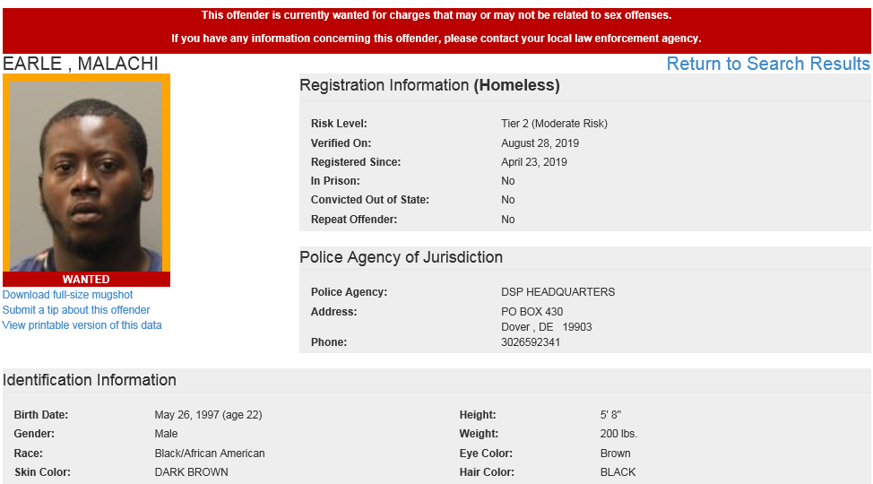 Dover – The Delaware State Police Sex Offender Apprehension and Registration Unit (S.O.A.R) is currently looking for the following wanted sex offenders after they either failed to register or re-register their current address. If anyone knows the location of these subjects, they are asked to call 302-672-5306. Information may also be provided by calling Delaware Crime Stoppers at 1-800-TIP-3333, via the http://www.delaware.crimestoppersweb.com/