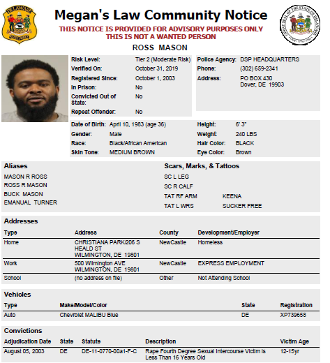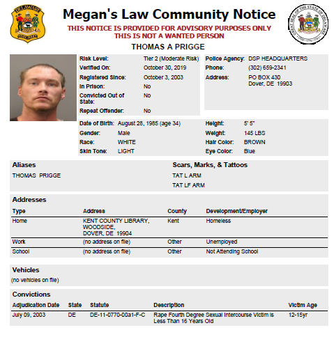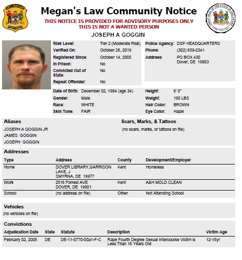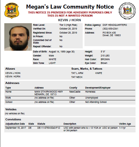 Homeless Sex Offender Notification