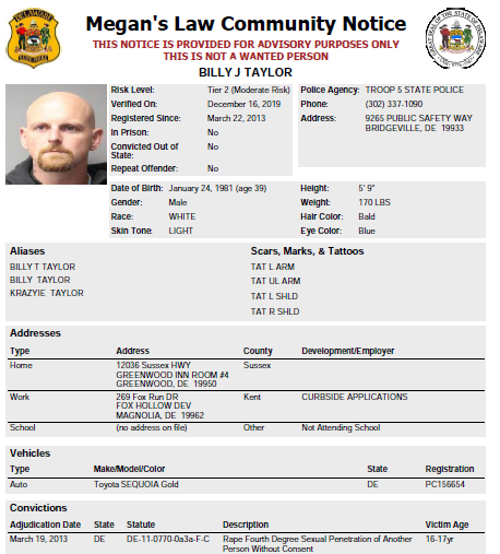 Dover – The Delaware State Police Sex Offender Apprehension and Registration Unit (S.O.A.R) is currently looking for the following wanted sex offenders after they either failed to register or re-register their current address. If anyone knows the location of these subjects, they are asked to call 302-672-5306. Information may also be provided by calling Delaware Crime Stoppers at 1-800-TIP-3333, via the http://www.delaware.crimestoppersweb.com/