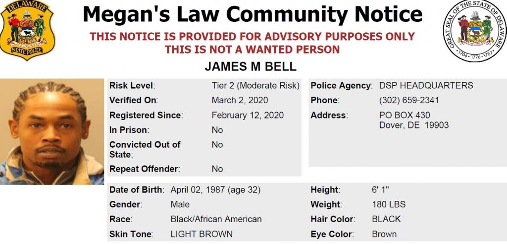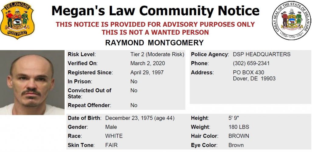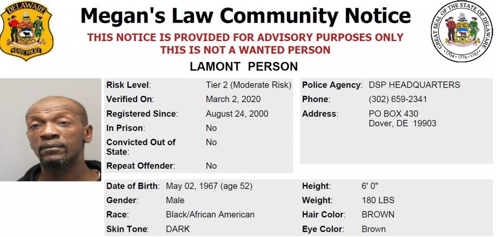Dover, Delaware – The following are not wanted. These are Homeless Sex Offender Public Notifications. If you have information that any of the listed subjects are occupying a residence, please call 302-672-5306. Information may also be provided by calling Delaware Crime Stoppers at 1-800-TIP-3333, via the internet at http://www.delaware.crimestoppersweb.com.