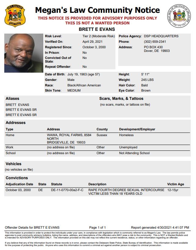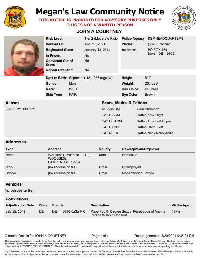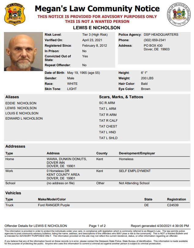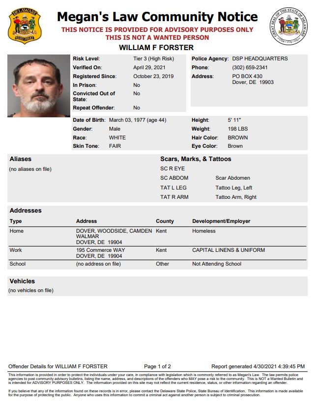 Homeless Sex Offender Notification- Dover