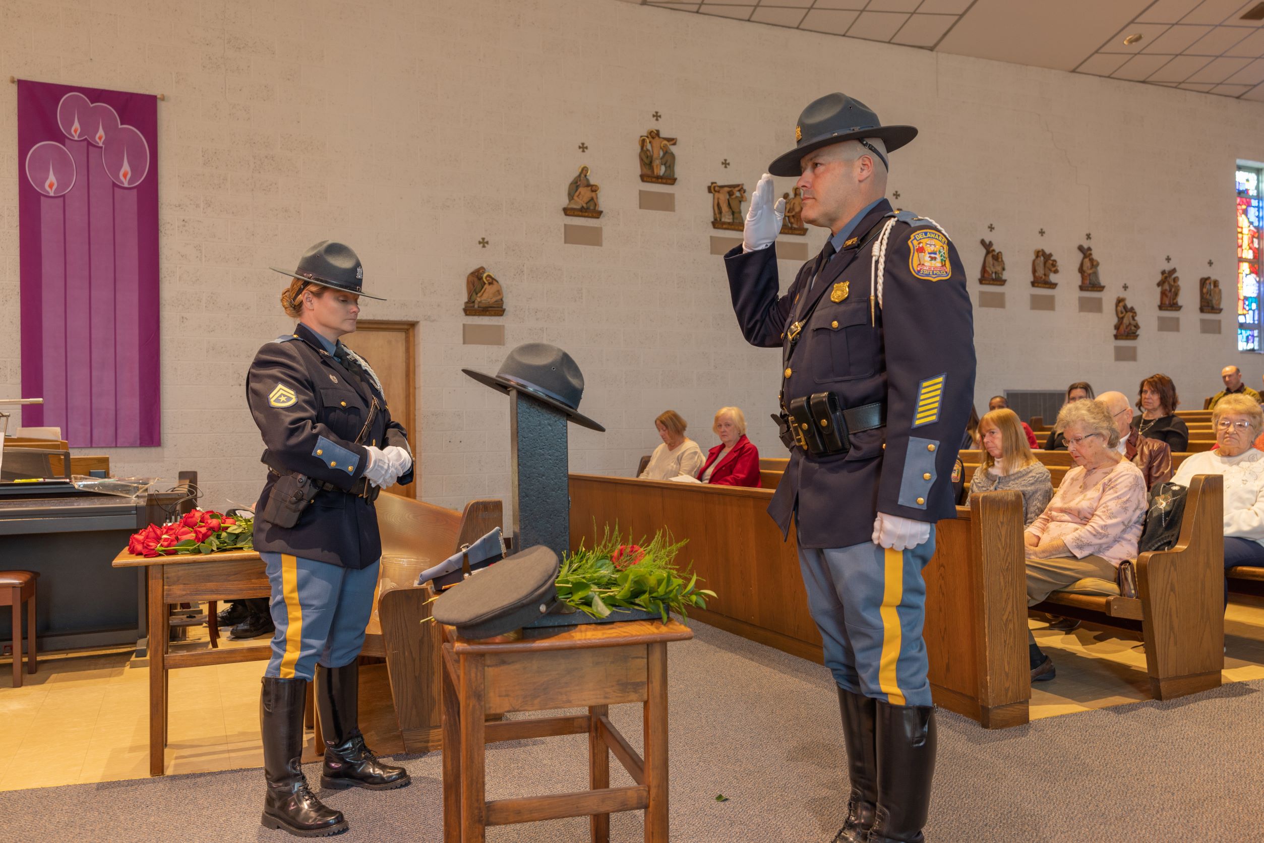 The Annual Delaware State Police Memorial Service was held at Saint Polycarp Parish on Monday, December 5, 2022, where active and retired troopers, along with their family and friends, came together to honor and remember the service and ultimate sacrifice of their 35 fallen sisters and brothers.