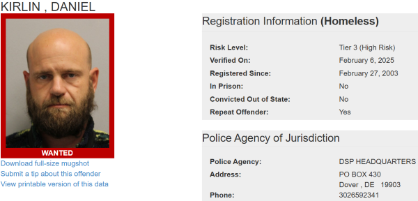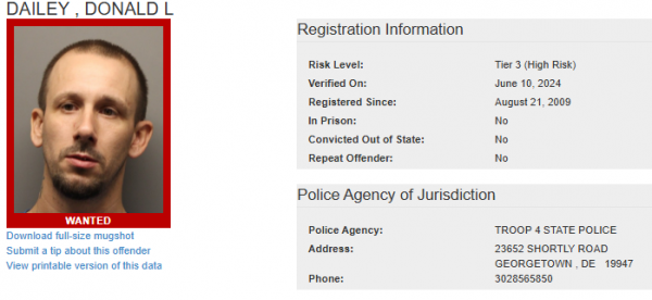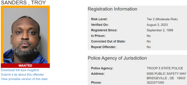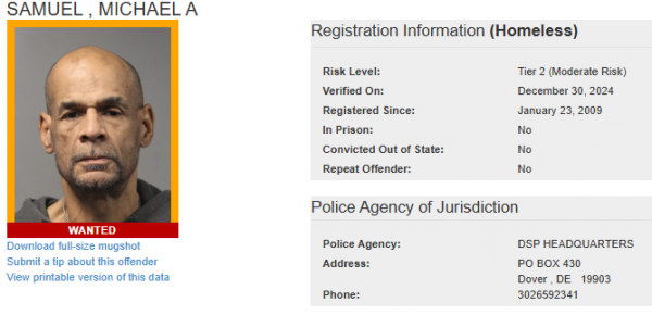 The Delaware State Police Sex Offender Apprehension and Registration Unit (S.O.A.R.) is currently looking for the following wanted sex offenders after they either failed to register or re-register at their current address. If anyone knows the location of these individuals, please call 302-672-5306. Information may also be provided by contacting Delaware Crime Stoppers at 1-800-847-3333.