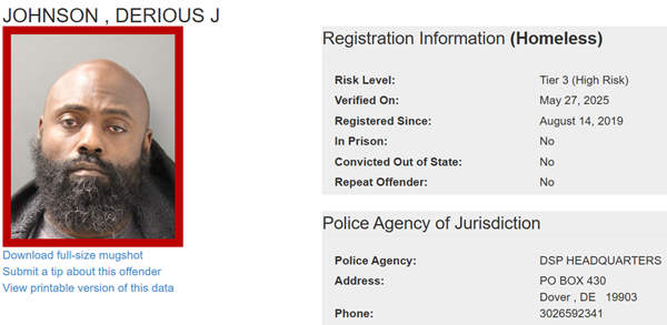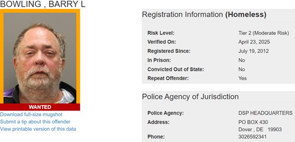 The Delaware State Police Sex Offender Apprehension and Registration Unit (S.O.A.R.) is currently looking for the following wanted sex offenders after they either failed to register or re-register at their current address. If anyone knows the location of these individuals, please call 302-672-5306. Information may also be provided by contacting Delaware Crime Stoppers at 1-800-847-3333.