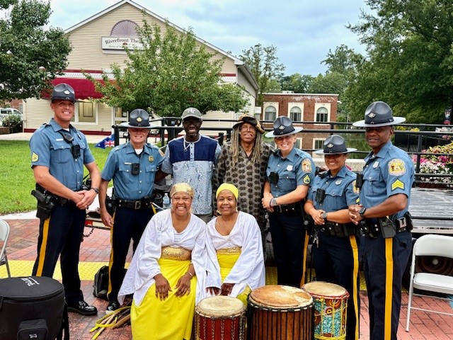 Members of the DSP Community Engagement and Recruiting participated in Milford First Friday International Night on August 1st. The evening was highlighted by members of the Tyehimba African Drummers and Camara Arts Dancers of Philadelphia, PA.