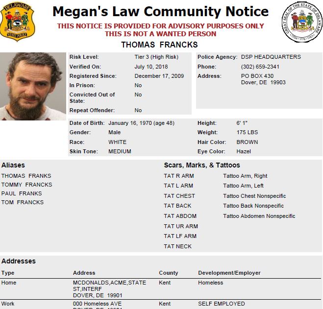 Thomas Franks homeless sex offender
